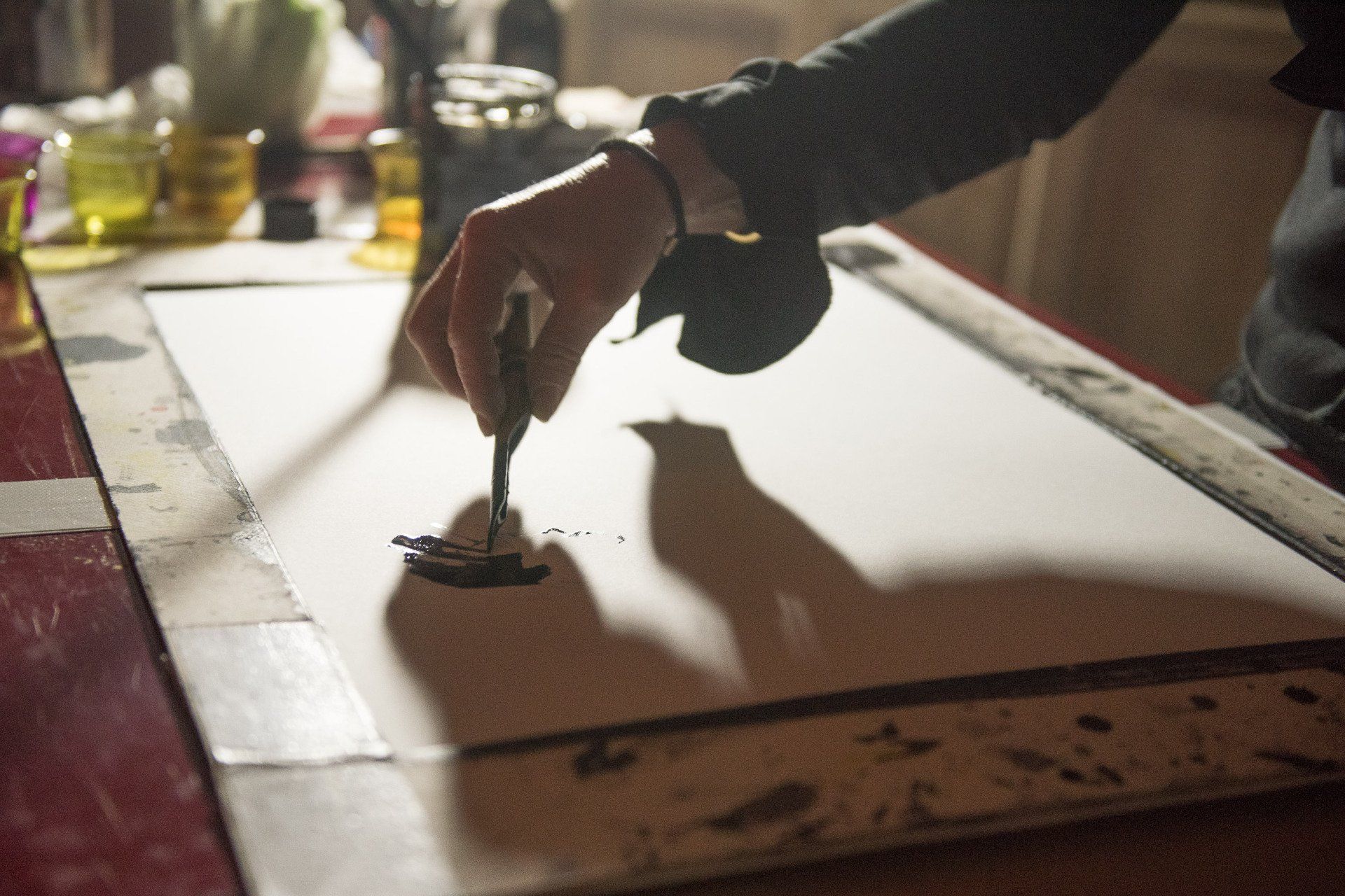 Elle trace au moyen d’un Kalamos (bambou) et de l’encre de Chine, avec cette dynamique inimitable qui lui permet de « jeter » sur le papier la vision intime de son travail.